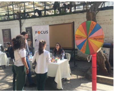FOCUS members participated in International College’s Wellbeing Day for the second year in a row. Dr. Yasmine El Masri answered students’ questions regarding Mental Health issues while they participated in Spin the Wheel activity. Students enjoyed spinning the wheel to either test their knowledge on mental health conditions or perform a kind and caring act towards their peers to help them feel integrated and know they are cared about.