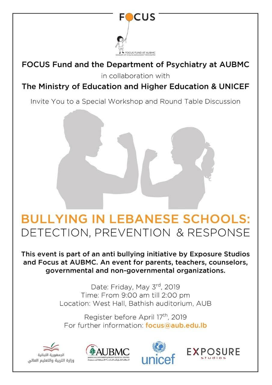This event is part of an anti-bullying initiative by Exposure Studios and Focus Fund at AUBMC. An event for parents, teachers, counselors, governmental and non-governmental organizations.